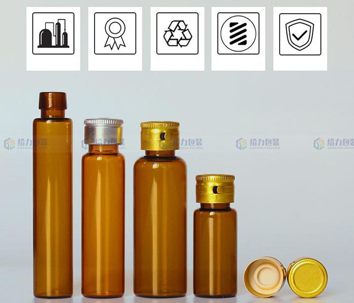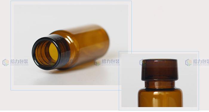 C型口口服液瓶適用于盛裝口服液、保健品,瓶口為C型口,可配鋁蓋、丁基膠塞、硅膠塞等,口服液瓶的瓶口與瓶蓋構成了瓶的密封體系,除了瓶身所使用的原材料及其評審本身的壁滲透功能,瓶蓋的密封性好壞直接影響到瓶中內容物的質量。顏色有棕色和通明,棕色C型口服液瓶首要起到避光的效果,可防止藥品的蒸發,由于只需濾去可見光中的高能量波段的光就可以防止藥品見光分化。
