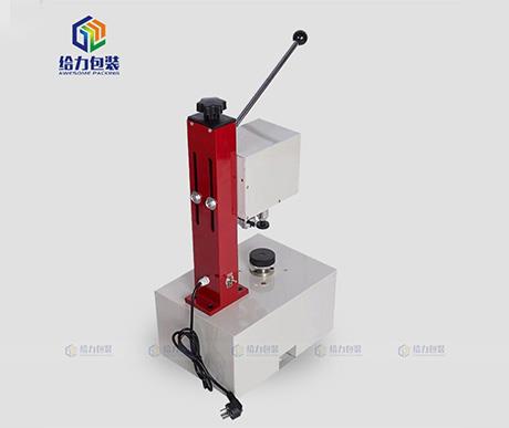 1)把灌好液體并套上蓋子的瓶子放到下托盤上,靠在v型支塊內,一手扶住瓶子,另一手將手柄朝后往下拉。這時托盤托著瓶子向上抬起,直到瓶蓋與軋蓋頭壓緊。